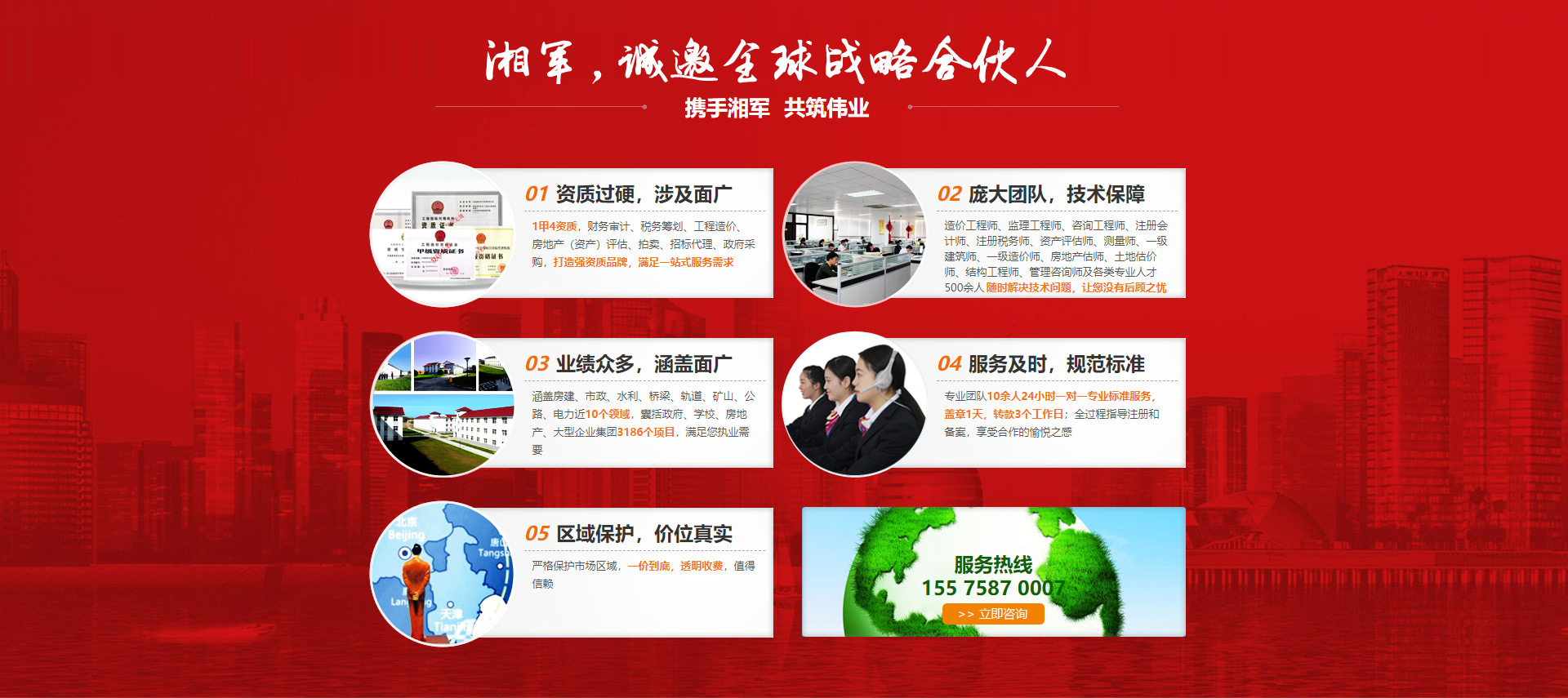 湖南湘軍咨詢集團(tuán)有限公司創(chuàng)立于2008年,是湖南省目前最大的審計(jì)、評(píng)估、工程、經(jīng)濟(jì)類綜合服務(wù)機(jī)構(gòu)之一,形成了配套完善的工程項(xiàng)目服務(wù)、金融服務(wù)和財(cái)稅服務(wù)三大產(chǎn)品體系,具備項(xiàng)目決策、建設(shè)、運(yùn)營(yíng)、融資、管理咨詢、資本運(yùn)作等一條龍服務(wù)功能。工程造價(jià)咨詢與工程監(jiān)理等項(xiàng)目管理能力得到了各級(jí)政府的充分肯定,報(bào)表審計(jì)與房地產(chǎn)評(píng)估等金融服務(wù)產(chǎn)品在省內(nèi)各金融機(jī)構(gòu)通用,受到廣泛認(rèn)同與支持。本集團(tuán)為個(gè)人、企業(yè)、科技產(chǎn)業(yè)園、政府機(jī)構(gòu)提供KPO(知識(shí)流程外包):驗(yàn)資、審計(jì)、評(píng)估、工程造價(jià)、法律、融投資服務(wù);BPO(業(yè)務(wù)流...